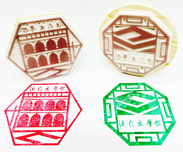 「橡皮印章工作坊」以澳門文學館標誌和建築外貌為主題,融合「中國傳統圖案"的特色,參加者可親手製作一個別具特色圖案的橡皮印章,體驗中國傳統工藝技法。