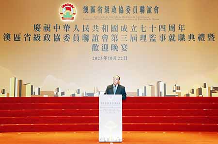 賀一誠強調,在新時代國家改革開放進程中,澳門具有特殊地位和獨特優勢,仍將發揮不可替代的作用。特區政府將團結帶領社會各界,充分發揮「一國兩制」的制度優勢,全面落實國家賦予澳門的「一中心、一平台、一基地」重要定位,積極把握「一帶一路」、粵港澳大灣區建設、橫琴粵澳深度合作區建設等重大機遇,為實現中華民族偉大復興更好發揮作用。與此同時,要以更大的作為,發展經濟、改善民生,破解經濟社會發展中的深層次矛盾和問題,共同譜寫具有澳門特色「一國兩制」實踐的新篇章。