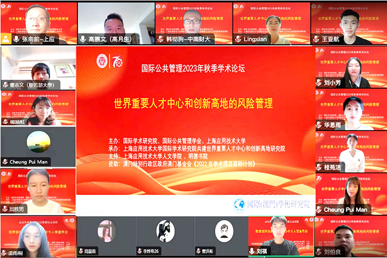 【特訊】日前,由國際(澳門)學術研究院、國際(澳門)公共管理學會、上海應用技術大學主辦,上海應用技術大學國際(澳門)學術研究院共建世界重要人才中心和創新高地研究院承辦,上海應用技術大學人文學院、明德書院支持,澳門基金會《2022年學術項目資助計劃》資助之「國際公共管理2023年秋季學術論壇」圓滿落幕。是次論壇主題為世界重要人才中心和創新高地的風險管理,多名專家、學者、研究員參與,會議連續兩天採用線上線下相結合方式進行,與會者冀研究成果助力管理構建人才中心和創新高地的風險。