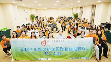 【特訊】澳門展智服務協會為增進員工團隊凝聚力,上週六於勵庭海景酒店舉辦「正向工作間之抗逆與逆境職能課程」員工培訓,邀得香港資深培訓經驗導師吳忠泰主講,帶領員工重新思考工作間定義及認識自我,並透過解難遊戲建構團隊的合作意識。是次培訓該會理事代表及員工共七十四人參與,活動得到澳門基金會及澳門商業銀行贊助。