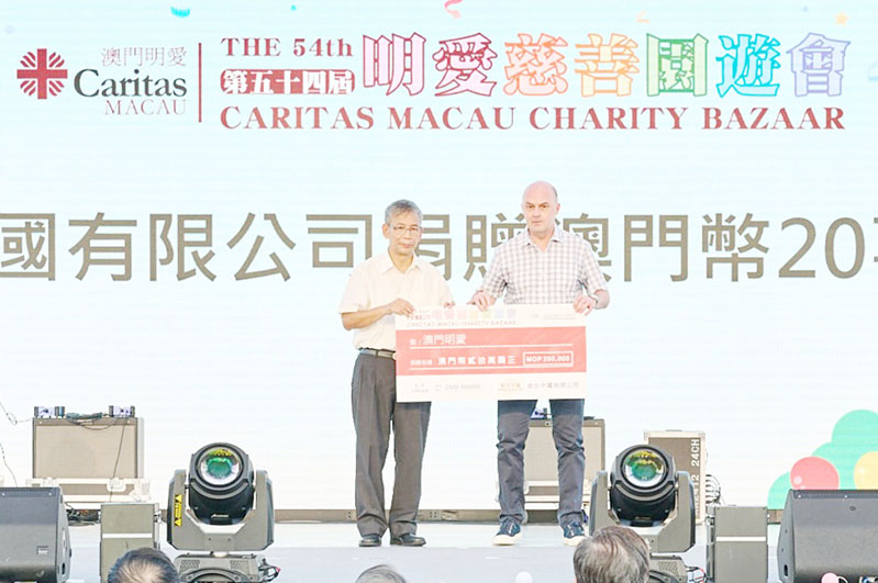 於10月29日,金沙中國有限公司企業傳訊及社會事務副總裁沈頌年於澳門大學舉行的支票捐贈儀式上,將澳門幣10萬元的善款交予澳門明愛總幹事潘志明,以支持「2023澳門明愛慈善跑」。