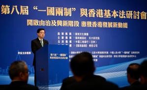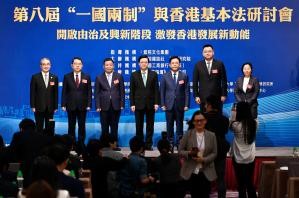 【香港中通社11月23日電】(記者 張明臻)第八屆“一國兩制”與基本法研討會23日在香港舉行。來自學術界、法律界、政商界、金融界等逾120位嘉賓出席,共同探討香港在“一國兩制”與基本法下的獨特優勢與機遇。