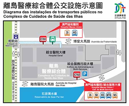 當中,為配合澳門協和醫院啟用,自12月16日(周六)起,啟用分別位於醫院北面靠近綜合醫院大樓的“澳門協和醫院”巴士站,以及位於醫院南面靠近綜合服務行政大樓的“澳門協和醫院/綜合服務大樓”巴士站,並調整35、50、H3、MT4以及N5的路線行程以及停靠站點,延伸服務範圍至澳門協和醫院,方便巿民往來。