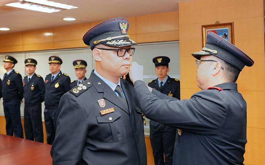 梁毓森局長在儀式上勉勵官員要克盡己任、廉潔奉公、遵守法紀,繼續在崗位上發揮所長,為澳門社會的安全穩定做好各項工作,貢獻力量。