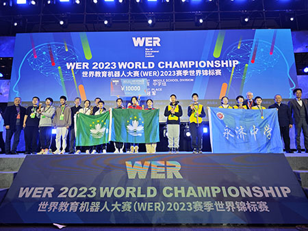 世界教育機器人大賽(WER)2023賽季世界錦標賽澳門代表隊由60名學生與8名老師組成,分別來自培正中學、濠江中學、澳門坊眾學校、澳門中華總商會附設青洲中學與嶺南中學。