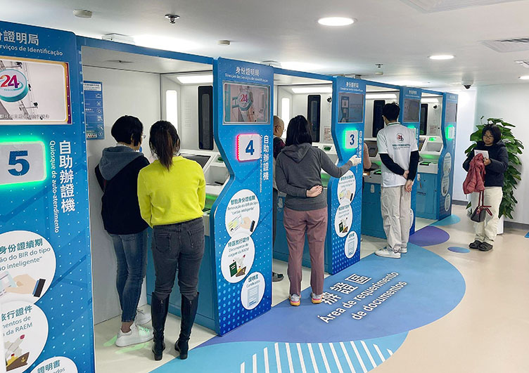 為配合特區政府電子政務發展,構建現代化服務型政府,特區政府於去年十二月五日推出七個設計風格統一的政府二十四小時自助服務中心,分佈澳門半島、氹仔及路環,各中心均設有新款自助辦證機及自助領證機,供合資格的居民自助辦理身份證續期、特區護照及各項證明書申請。現時只要身份證的發證日已年滿五歲的澳門永久性居民,即可使用二十四小時自助辦證機辦理續期。