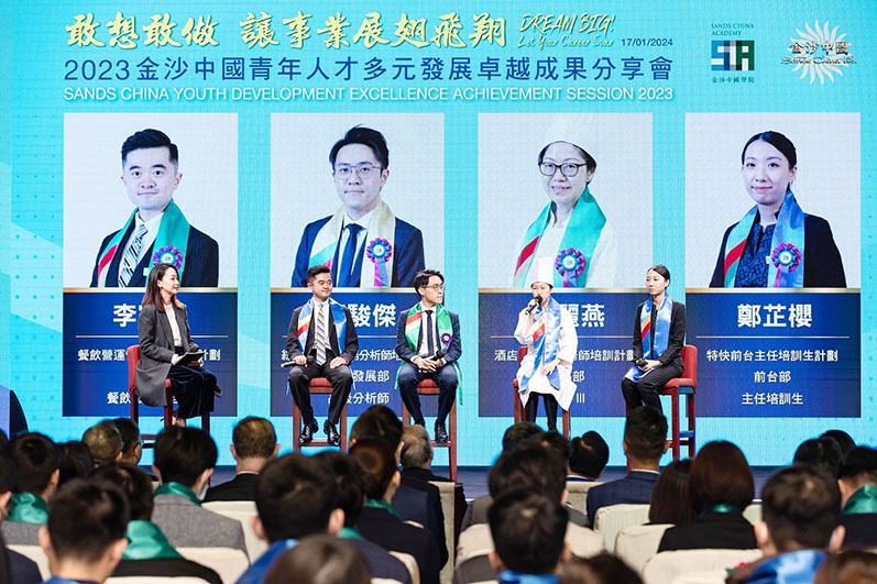 【特訊】金沙中國有限公司周三在澳門倫敦人舉辦2023金沙中國青年人才多元發展卓越成果分享會。活動以「敢想敢做,讓事業展翅飛翔」為主題,透過影片、經驗分享等不同方式回顧公司去年在青年人才培育方面的卓越成果。
