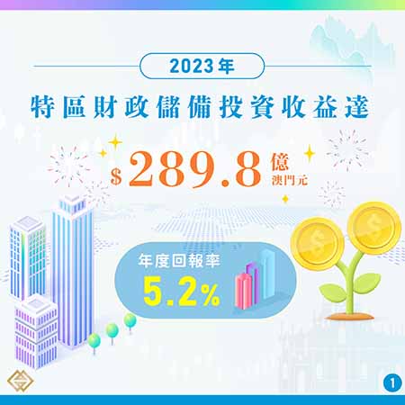 【特訊】金融管理局表示,2023年,澳門特區財政儲備在審慎而靈活的投資管理下,全年錄得289.8億(澳門元,下同)的投資收益,年度回報率為5.2%。