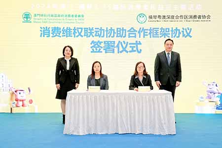 【特訊】澳門特別行政區政府消費者委員會(下稱澳門消委會)與橫琴粵澳深度合作區消費者協會(下稱深合區消協)聯合舉辦主題活動,響應“3.15國際消費者權益日”。活動上並簽署《琴澳消費維權聯動協助合作框架協議》(下稱《協議》)深化澳琴消費維權協作。