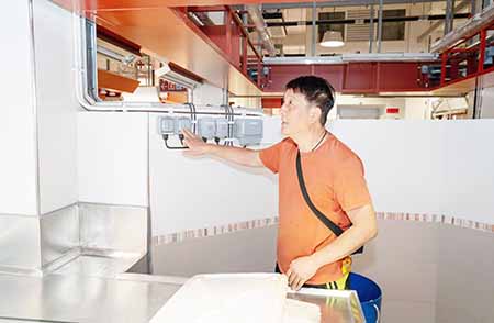 另外,因應不同售賣種類攤檔的運作需求,重新配置了檔內設施設備,例如加設統一的攤檔招牌、攤檔上方整體的儲物櫃、擴大了售賣枱展示空間,增添了檔內電源位置、防水插蘇、防水照明、同時亦增大了排水系統以及魚檔售賣枱前設置強化玻璃擋水板,避免攤位水濺濕公共空間等,以提升街市的衛生整潔形象,增加消費者的舒適購物體驗。
