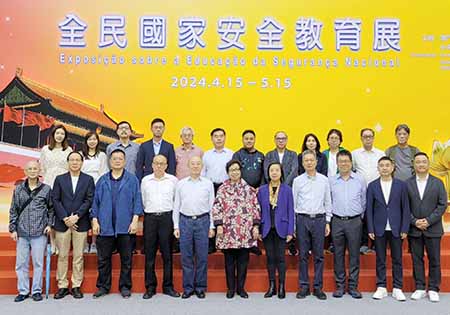 【特訊】澳門新聞工作者協會、澳門記者聯會及澳門體育記者協會今年繼續組織新聞界參觀由澳門特區政府與中聯辦合辦的2024“全民國家安全教育展”。傳媒機構及團體負責人陸波、羅崇雯、鄭秀明、胡根等一行二十多人,五月四日下午五時到綜藝館展場參觀,一行細心聆聽導賞員講解,細覽圖片及視頻細心聆聽講解及閱讀展版內容和觀看視頻。保安司司長辦領導在場接待。
