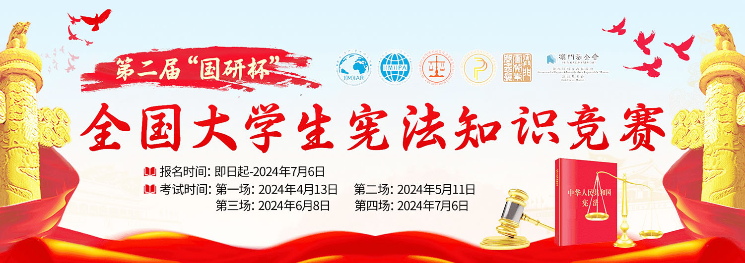【特訊】為營造全國大學生“知法、懂法、守法、愛法”的良好氛圍,現由國際(澳門)學術研究院擔任指導單位,國際(澳門)公共管理學會、國際(澳門)學術研究院法學研究所、國際(澳門)學術研究院公共政策研究所聯合舉辦,澳門基金會、澳門霍英東基金會資助的2024第二屆“國研杯”全國大學生憲法知識競賽現正接受報名。