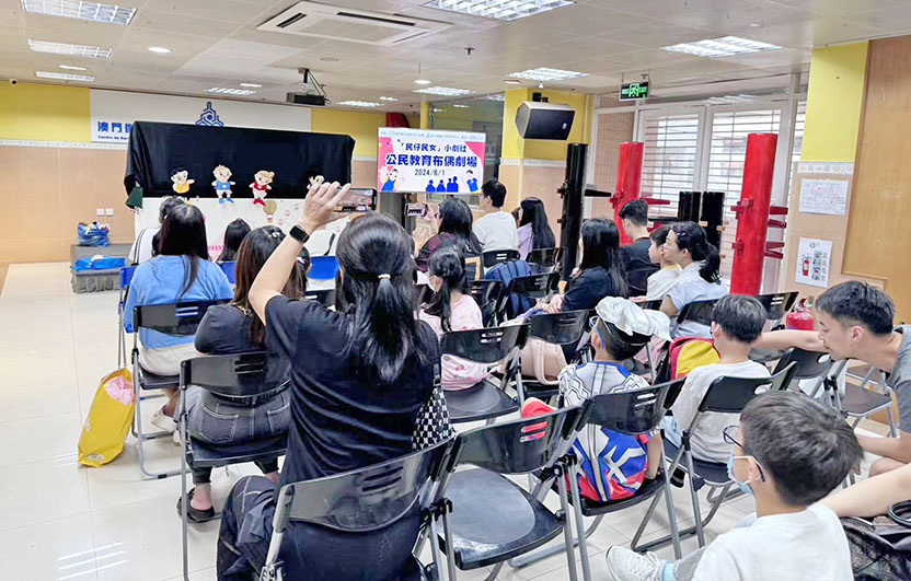 【特訊】澳門青年義務特工協會與街坊總會公民教育中心主辦、市政署贊助,「民仔民女」布偶小劇社公民教育布偶劇於本月正式展開巡迴演出。主辦單位早前招募一班三至五年級的小學生,化身成布偶劇小演員,經導師專業訓練後,首站於街坊總會公民教育中心進行公演。本年度的布偶劇主題為《有禮生活約章》當中的「信守承諾,遵守秩序」,透過「民仔民女」一家人在社區生活的情景,向觀眾推廣日常生活中應遵守規則、待人以禮。首場布偶劇吸引眾多親子欣賞,現場設有布偶體驗環節及攤位遊戲,讓觀眾親身體驗布偶的操作及朗讀有關「遵守秩序」的信息,加深觀眾對公民教育的認識。
