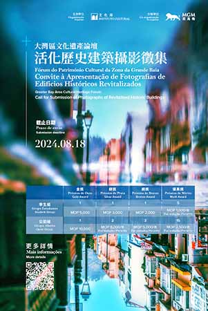 【特訊】為深化粵港澳大灣區在文化遺產領域的交流與合作,文化局將於10月下旬舉辦“大灣區文化遺產論壇”(以下簡稱“論壇”)及一系列延伸活動,其中包括由文化局主辦、美高梅合辦的“大灣區文化遺產論壇——活化歷史建築攝影徵集展”,展覽徵集以“澳門活化歷史建築”為主題的未經公開發表的黑白/彩色單張照片作品(包括航拍及全景攝影),公眾可於即日起至8月18日提交作品。