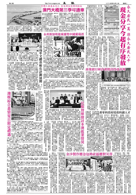 【特訊】為了向世界推廣卓越品質的中國葡萄酒,讓中國的頂級葡萄酒在國際上 燦放光芒,永利自 4 月 13 日成功舉辦首屆「永利臻典——中國葡萄酒大賽」後,便積極推動中國葡 萄酒走向國際。近期,該項大賽在澳門完成首秀,並於 5 月 25 日在新加坡 67 Pall Mall 私人葡萄酒 俱樂部舉辦了首次海外品酒會。近 100 位 67 Pall Mall 會員、葡萄酒專業人士和媒體受邀參加活動, 獨家品鑒了在四月大賽頒獎典禮中摘獲大獎的中國精品葡萄酒。此次品酒會是永利推廣中國葡萄酒 系列活動的其中一站,未來永利將繼續依托雄厚的餐飲實力和廣闊的國際網絡,助推更多中國佳釀 閃耀國際舞台。