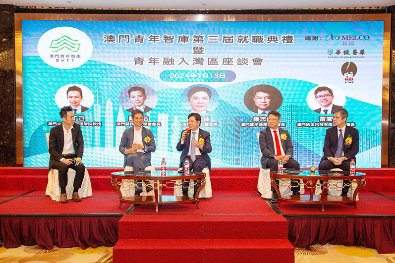 為了加深青年對四大產業發展動向及深合區發展機遇的了解,同日邀請了澳門銀行公會主席葉兆佳、澳門醫務行政學會會長戴華浩、澳門納金科技有限公司董事長雷震及澳門電子商務協會會長畢志健以 “1+4”適度多元發展策略為題進行分享。座談會由澳門大學工商管理學院教授劉丁己主持,探討青年在深合區的機遇、四大產業發展條件、未來路向及人才培育等議題。
