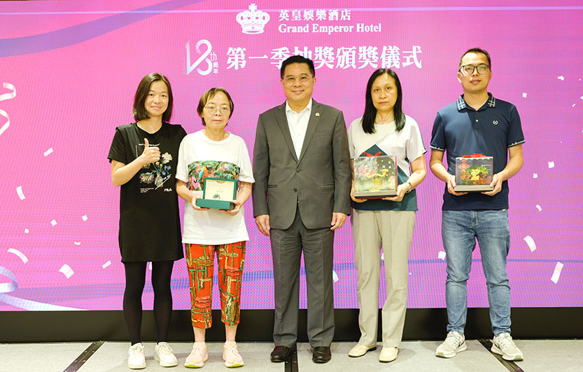 【特訊】英皇娛樂酒店18周年誌慶於2024年3月展開全年度慶祝活動,推出抽獎遊戲、限時市集及餐飲優惠等慶祝活動,深化本澳特色旅遊元素。第一季參加抽獎遊戲的人數共34,650,是次季度大獎包括勞力士名錶及英皇珠寶黃金擺件。第一季大獎得獎名單於2024年7月18日正式揭曉,並於當日下午舉行頒獎儀式,由英皇娛樂酒店總經理達振洪先生在水晶殿宴會廳頒發給三位得獎幸運兒,包括:頭獎得獎者鄭*芳獲得Rolex Oyster Perpetual 41、二獎得獎者Lam*I以及三獎得獎者Che*Ieng均獲英皇珠寶黃金擺件乙份。恭喜三位得獎幸運兒!