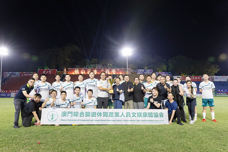 【特訊】澳門綜合旅遊休閒產業人員文娛康體協會(下稱“休閒產業文體會”)日前應佛山市三水區文化廣電旅遊體育局邀請,組織了一支“休閒產業職工聯隊”前往佛山三水區參與 “西甲”足球友誼賽,吸引大量民眾觀看,期間並安排本澳歌手獻唱,活動促進兩地文體的交流和友誼,澳門職工聯隊出戰東道主百森椰汁隊,雙方法定時間賽成2比2平手,澳門職工聯隊最終以12碼結果5比4勝出。