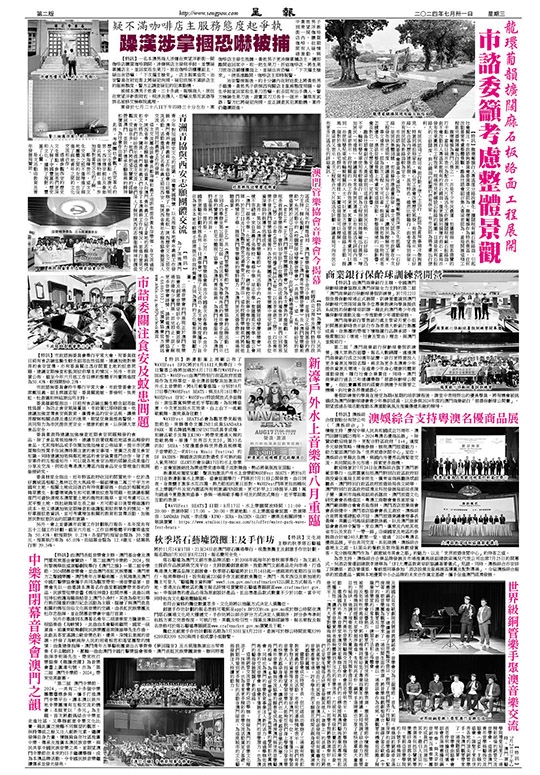此外,第25屆《澳門管樂藝術節》系列活動中的《校園樂隊迎雙慶音樂會》同樣不容錯過。來自菜農子弟學校、粵華中學、培正中學、聖羅撒英文中學、聖公會(澳門)蔡高中學、化地瑪聖母女子學校、鏡平學校及教業中學的管樂團將輪番上陣,於8月1日及2日為觀眾帶來充滿青春活力的演出。這些校園管樂精英們將用他們的熱情和才華,展現澳門管樂藝術的獨特魅力,為澳門居民及遊客帶來一場場視聽盛宴。