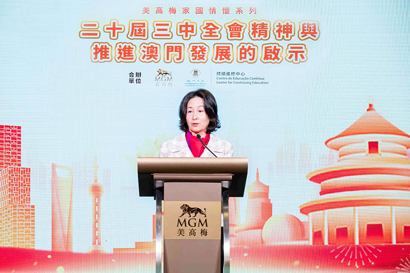 何超瓊表示,三中全會勾畫國家未來五年目標,圍繞「全面深化改革,推進中國式現代化」主題,為國家高質量發展擘劃藍圖。今年適逢澳門雙慶之年,各界應融入國家改革節奏,為祖國作出更大貢獻。在新佂程上,美高梅將持續推進旅遊革新,開拓更廣闊「旅遊+」業態。而在文旅融合上,將繼續守正創新,進一步做好科技賦能,將中華優秀文化創造性轉化成高質量的文旅盛事,助力推進國家「文化強國」建設。她亦鼓勵大家思考如何抓住國家賦予澳門的種種機遇,如大灣區及深合區的全新平台等,將建設澳門之力,貢獻國家大局。