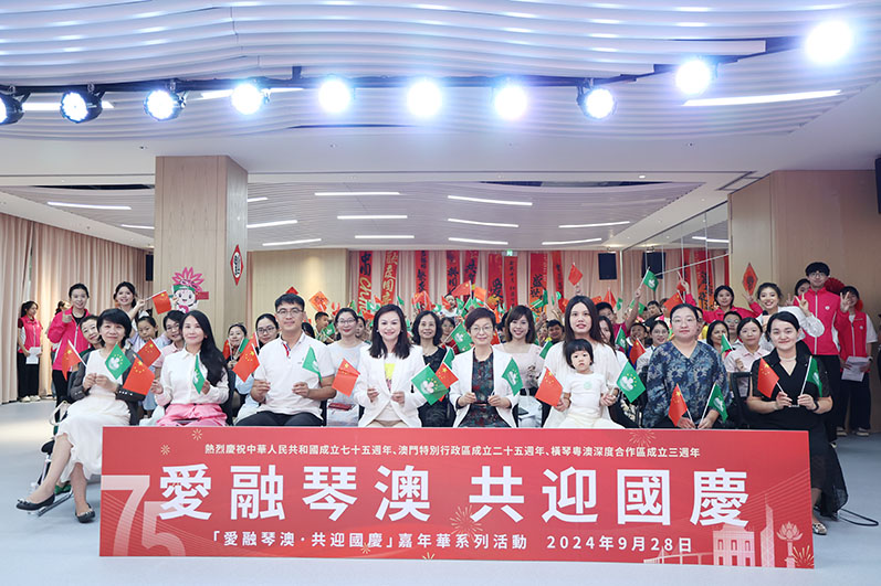 【特訊】由澳門婦女聯合總會廣東辦事處主辦“愛融琴澳·共迎國慶”嘉年華系列活動在橫琴澳門新街坊家庭社區服務中心圓滿舉行。活動旨在慶祝中華人民共和國成立七十五周年、澳門特別行政區成立二十五周年和橫琴粵澳深度合作區成立三周年,冀透過活動進一步增進琴澳居民的愛國情懷,營造和諧共融的社區氛圍,活動吸引近二百名嘉賓和居民參與。