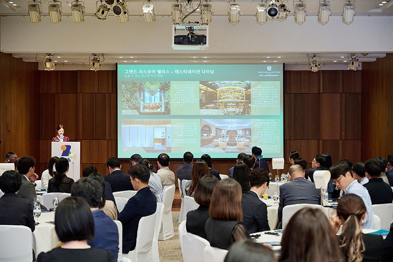 據全球商務旅行協會(GBTA) 統計,韓國為全球第七大商旅市場,商務旅遊消 費的年度增長排行世界第一。作為澳門旅遊業十大國際客源市場的首位,韓國 旅客對高爾夫球運動及星級餐飲等高品質旅遊產品和服務深感興趣。澳娛綜合 藉是次峰會,深入了解這個具備高潛力的客源市場,通過介紹和推廣集團旗下 的多項旅遊設施、酒店項目和即將舉行的重點活動,特別是米芝蓮星級餐飲、 高球賽事和其他文化節慶盛事,展現澳門多姿多彩的旅遊體驗。會上更播放了 澳門旅遊相關的宣傳影片,並特別向與會者介紹了澳門特別行政區政府旅遊局 的智能行程規劃平台。