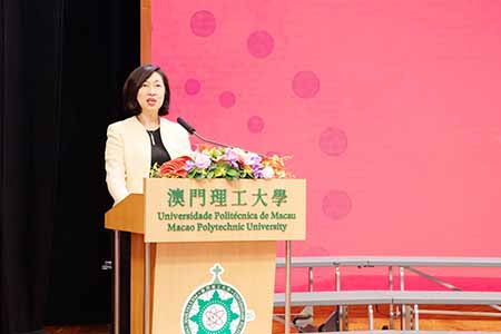 永利澳門有限公司總裁、董事會副主席陳志玲女士致辭時表示:「永利非常榮幸能與澳門理工大學合作舉辦一系列的專業課程。透過這些課程的學習,讓畢業學員獲得了更敏銳的商業動察力和宏觀市場視野,加深了對創新科技和快速變化的商業環境的理解,對他們的職業發展將起到重要作用。」