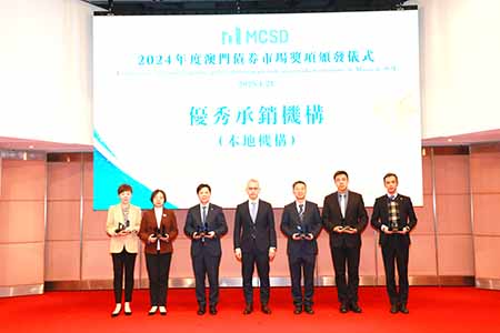 1月21日,澳門中銀憑借在債務資本市場領域的卓越貢獻,同時榮獲MSCD頒發的2024年度澳門債券市場“優秀發行機構”和“優秀承銷機構”兩項大獎。這充分彰顯了澳門中銀作為本澳最大主流銀行,在推動澳門現代金融與債券市場建設中所展現出的高度社會責任及強大專業能力。