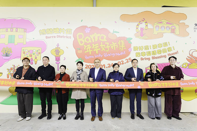 美高梅昨日(26日)為「Barra年年好市集」舉行開幕禮,主禮嘉賓包括澳門特別行政區政府文化局局長梁惠敏,澳門特別行政區政府旅遊局局長文綺華,澳門特別行政區政府經濟及科技發展局副局長陳子慧,中央人民政府駐澳門特別行政區聯絡辦公室宣傳文化部四級調研員朱偉,澳門特別行政區政府海事及水務局海事博物館館長薛啟善,Bookand總監黃家熙,日本新銳插畫家村上信理(Shinri Murakami),美高梅中國控股有限公司總裁及執行董事馮小峰以及美高梅品牌策劃高級副總裁廖頴琦,同場特邀澳門樂團現場演奏增添節日氣氛。此外,日本新銳插畫家村上信理(Shinri Murakami)和30位本澳學生於區內進行藝術交流,並一同創作片區之專屬壁畫,進一步注入藝術活力。