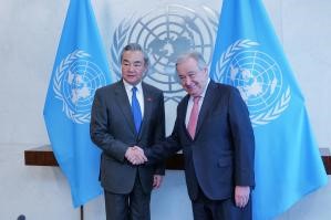 古特雷斯請王毅轉達對習近平主席的誠摯問候,表示聯合國高度贊賞中方堅持多邊主義、支持聯合國工作,積極評價中方倡議舉行本次會議,為改革全球治理、增強發展中國家聲音注入動力。他表示,聯合國高度重視中國作用,完全贊同並積極支持習近平主席提出的三大全球倡議。面對當前複雜挑戰,聯合國將堅守既定理念,落實憲章宗旨和原則,呼籲各國加強合作,共同維護國際法治,促進和平和可持續發展。