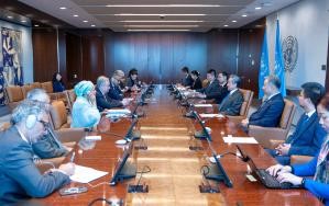 【中新社聯合國2月19日電】(記者 王帆)當地時間2月18日,中共中央政治局委員、外交部長王毅在紐約主持聯合國安理會高級別會議期間會見聯合國秘書長古特雷斯。
