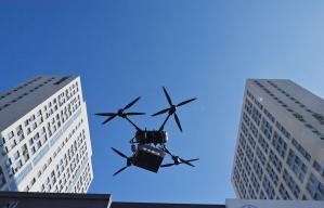 【中新社長春2月21日電】(李釗 金喬)21日清晨,長春淨月高新區,一架無人機緩緩升起,將一箱重達十餘公斤的快遞精準送達1公里外的芯光產業園。