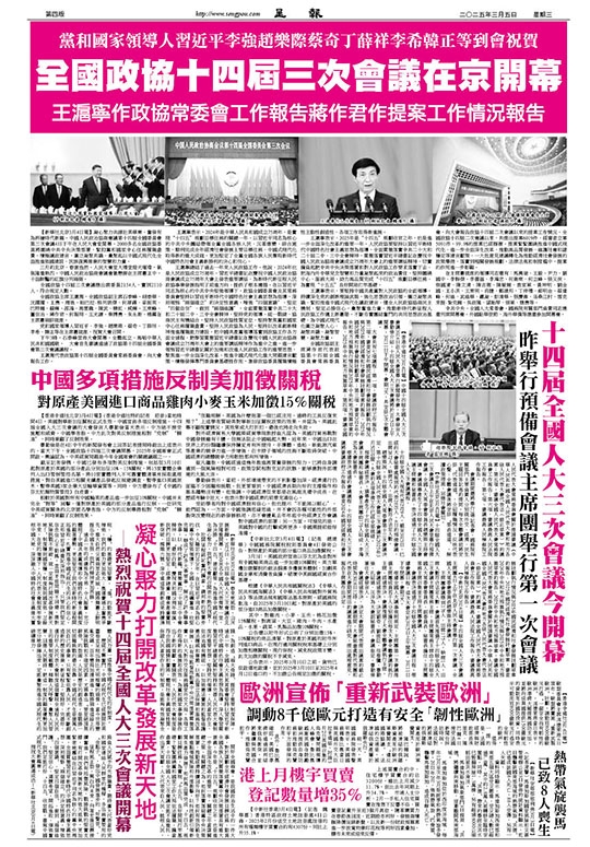 十四屆全國人大三次會議今開幕 昨舉行預備會議主席團舉行第一次會議