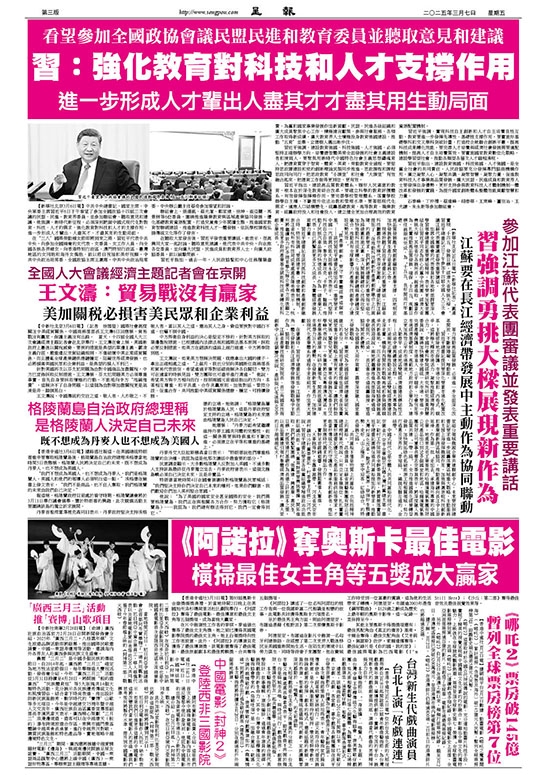 看望參加全政協會議民盟民進和教育委員並聽取意見和建議 習:強化教育對科技和人才支撐作用 從以進一步形成人才輩出人盡其才盡其用生動局面