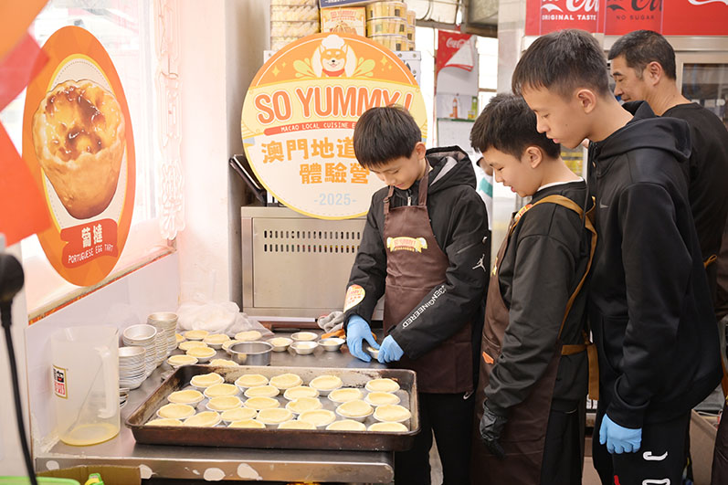 澳門特色手信和小食眾多,平時旅客都「大包小包」將美食帶回去和親朋好友分享。為進一步推廣澳門「創意城市美食之都」的美譽,澳門菁學藝術發展協會和兩家手信店合辦「澳門地道美食體驗營」,活動為期十四天,市民和遊客凡在澳門商店或食店消費滿三百元,或於合作的兩間商戶消費一百元,就可以報名參加活動,體驗地道美食葡撻及大三巴造型的車輪餅烹調和包裝設計過程,首場的預熱活動,吸引不少家長帶小朋友報名參與。
