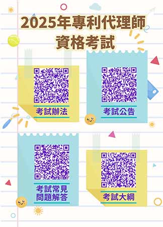 詳情可瀏覽國家知識產權局網頁有關專利代理師資格考試辦法(https://ggfw-dlsks.cnipa.gov.cn/home_item_Text_details?nid=4459)、2025年專利代理師資格考試公告(https://ggfw-dlsks.cnipa.gov.cn/home_item_Text_details?nid=6310)、考試大綱(https://ggfw-dlsks.cnipa.gov.cn/home_item_Text_details?nid=6332)及考試常見問題解答(https://ggfw-dlsks.cnipa.gov.cn/home_item_details?nmode=3),或參閱經濟及科技發展局網頁(http://www.dsedt.gov.mo)。