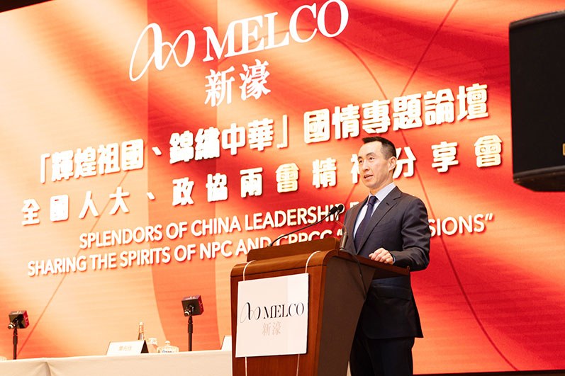 【特訊】新濠博亞娛樂(「新濠」)邀得全國人民代表大會(全國人大)代表和中國人民政治協商會議(全國政協)委員出席於今天舉行的國情專題論壇,向與會者分享第十四屆全國人大三次會議和全國政協十四屆三次會議(二零二五年全國兩會)的精神。是次分享會為新濠「輝煌祖國.錦繡中華」國情專題系列活動之一,旨在透過推行內部教育計劃弘揚民族自豪感及愛國愛澳精神。主講嘉賓包括全國人大代表、澳門工會聯合總會會長何雪卿女士;全國人大代表、澳門工商聯會會 長何敬麟先生;全國政協委員、澳門銀行公會主席葉兆佳先生;全國政協委員、立法會議員林倫偉先生及全國政協委員、新濠主席兼行政總裁何猷龍先生。