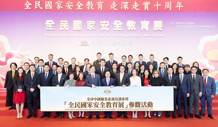 自澳門於2018年首次舉辦該展覽以來,金沙中國已第七度組織員工參觀,作為公司職業素養培訓系列其中一環。今年的專題展覽以「全民國家安全教育,走深走實十周年」為主題,藉此回顧國家和澳門特區政府多年來在推動全民國家安全教育的里程碑;展覽由澳門特別行政區政府與中央人民政府駐澳門特別行政區聯絡辦公室聯合主辦。