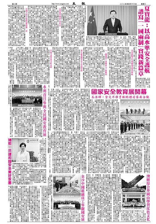 王英偉博士表示:「國家安全是國家發展最重要的基石之一,十分高興在國家第十個『全民國家安全教育日』與一眾員工回顧國家安全工作歷年來所取得的歷史性成就。全面了解國家安全是企業與員工在面對外部多變環境中穩健發展的『必修課』,為此金沙中國已連續七年組織員工參觀是次展覽,期望藉此深化公司上下對國家安全的意識,助力推動澳門融入國家發展大局,捉緊發展機遇為國家長期繁榮穩定貢獻力量。」