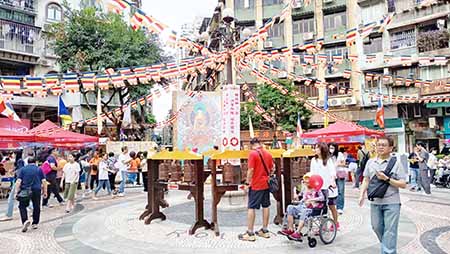 系列活動分為祈福法會、嘉年華展會、齋宴晚會三大板塊,形式涵蓋茶禪、茹素、禮佛、誦經、梵樂、開示、曲藝、武術等多元體驗方式,更有佛總合唱團、澳門新新藝術會、珠海愛樂輕樂團、澳門少林武術文化協會、澳門長虹音樂會、普濟禪院太極班、澳門婦女聯合總會合唱團等輪番登場,社會各界歡聚一堂,分享心聲,推動城市共融發展。另外,有佛教團體昨日在三盞燈舉行佛誕節活動,吸引不少市民到場禮佛浴佛,共沾佛恩。