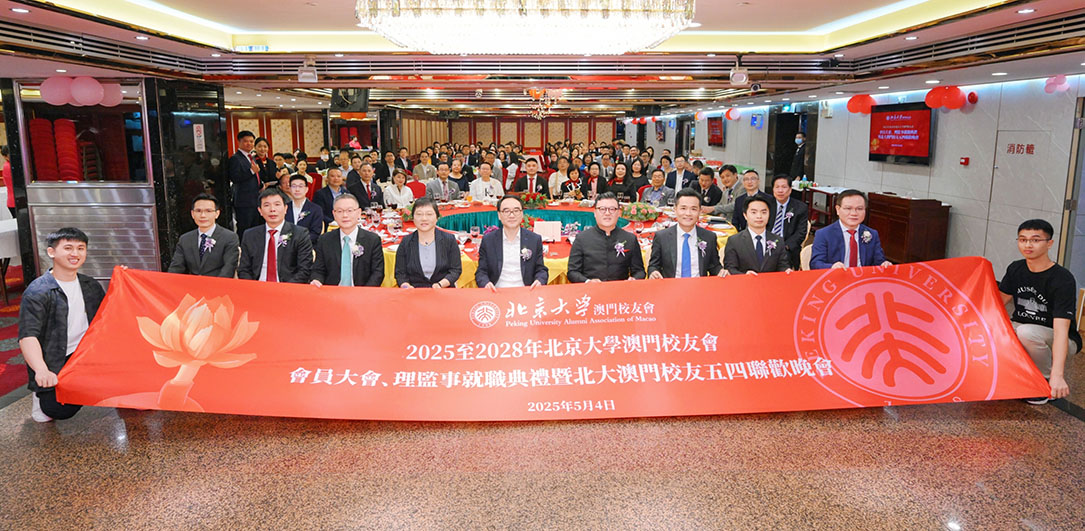 【特訊】北京大學澳門校友會於五月四日假聯邦大酒樓舉辦「2025至2028年會員大會、理監事就職典禮暨五四聯歡晚會」,逾百位政商學界校友齊聚一堂,共慶校友會薪火相傳的使命。活動彰顯校友會作為母校與澳門的橋樑角色,並積極響應特區政府施政方針,為社會發展注入北大智慧。中央人民政府駐澳門聯絡辦公室、特區政府官員及多所高校代表應邀出席,場面隆重。
