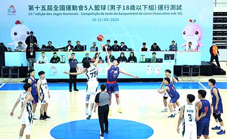 特訊】由粵港澳三地首次聯合舉行的第十五屆全國運動會及全國第十二屆殘疾人運動會暨第九屆特殊奧林匹克運動會將於本年11、12月揭幕,為確保正式賽事順利舉行,由十五運會及殘特奧會澳門賽區籌備辦公室統籌,聯同組委會各政府部門及中國澳門籃球總會共同參與,並邀請國家體育總局相關項目技術代表來澳指導及支援的5人籃球(男子18歲以下組)項目運行測試,於5月10日至11日在塔石體育館A館進行,整體測試達至預期目標。