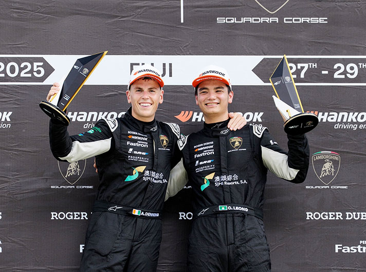 【特訊】在澳娛綜合度假股份有限公司(「澳娛綜合」)的鼎力支持下,極具標誌性的亞洲賽車隊──澳娛綜合德利賽車隊,於日前出戰本季在日本舉行的第三輪 2025 年林寶堅尼 Super Trofeo 亞洲挑戰賽(LSTA),成功取得先後六場比賽當中的四場勝利。澳門本土車手梁瀚昭和愛爾蘭籍隊友 Alex Denning 雖在富士賽道的第一場賽事中屈居亞軍,但在隨後的第二場賽事上展現出堅毅鬥志,成功在激烈的角逐下奪得冠軍,帶領車隊繼續穩居排名榜榜首,以首位之姿進入將於下月在韓國舉行的第四輪賽事。