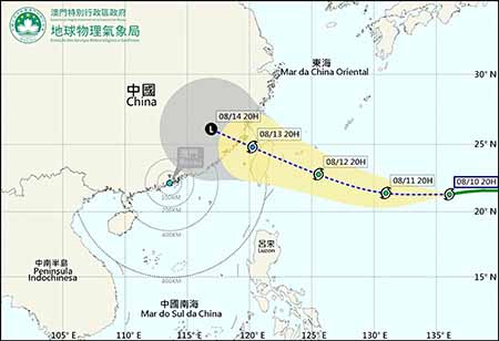 當局又稱,於昨日晚上八時,強烈熱帶風暴「楊柳」正集結在西北太平洋,位於澳門東約二千三百二十公里處,以時速約二十公里向西方向移動,正持續發展及以偏西方向移動,大致趨向台灣地區,預料未來兩到三天,路徑及強度指數方面仍存在變數。