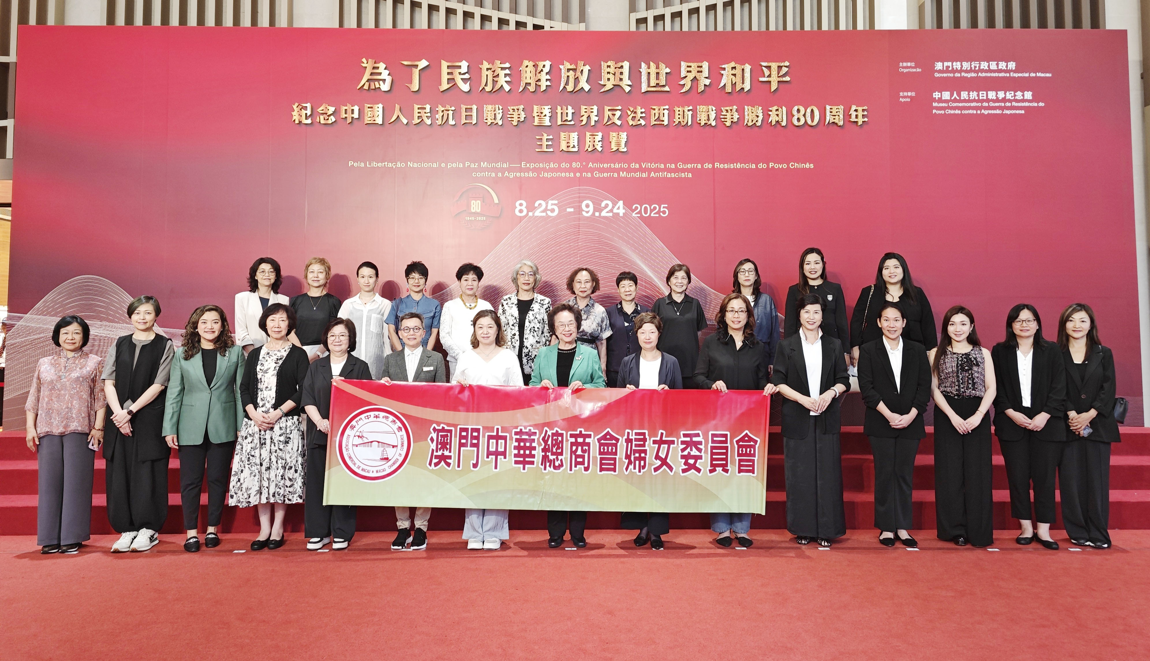 【特訊】由澳門特別行政區政府主辦、中國人民抗日戰爭紀念館支持的「爲了民族解放與世界和平——紀念中國人民抗日戰爭暨世界反法西斯戰爭勝利八十周年」主題展覽,現於中葡平台綜合體舉行。澳門中華總商會婦女委員會於九月十日下午五時三十分,在中總副會長賀定一和中總副理事長兼婦委會主任林燕妮的率領下,一行三十五人前往參觀展覽。過程中,委員們駐足觀看,認真聆聽講解。委員們紛紛表示,展覽以大量的史料印證了中國共産黨在抗戰中的中流砥柱作用,生動詮釋了「全民族團結抗戰」的偉大意義。