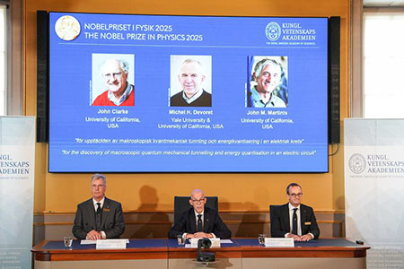 【中新社北京10月7日電】斯德哥爾摩消息:瑞典皇家科學院7日宣佈,將2025年諾貝爾物理學獎授予約翰·克拉克(John Clarke)、米歇爾·H·德沃雷特(Michel H. Devoret)、約翰·M·馬丁尼斯(John M. Martinis),以表彰他們“在電路中發現宏觀量子隧穿和能量量子化”,他們將平分1100萬瑞典克朗的獎金。