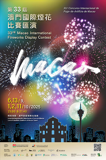 因應澳門正處颱風季節,旅遊局已制定惡劣天氣及颱風吹襲的應急預案,將透過跨部門機制密切留意地球物理氣象局的專項天氣預報,及時作出評估並調整活動安排。活動安排如有調整,將儘早對外公佈。第33屆澳門國際煙花比賽匯演詳情請瀏覽專頁: http://fireworks.macaotourism.gov.mo。