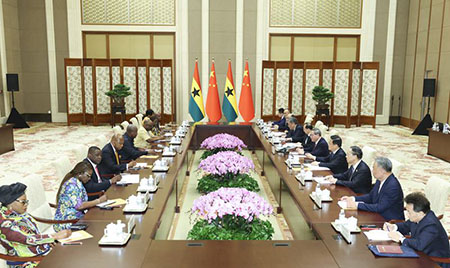 馬哈馬高度評價習近平主席在全球婦女峰會開幕式上發表的重要講話,祝賀峰會取得圓滿成功。馬哈馬表示,迦納是非洲第一批同新中國建交的國家。加方由衷感謝中國長期以來提供的寶貴支持和幫助,讚賞中方對非洲建交國產品零關稅政策。加方將堅定恪守一個中國原則,期待以慶祝兩國建交65周年為契機,加強雙方高層往來,在“一帶一路”倡議和中非合作論壇框架內,促進貿易、投資、基建、能源、農業、礦業等領域合作,探索數字經濟、人工智慧等新增長點,密切人文交流。加方支持習近平主席提出的全球治理倡議,願同中方深化多邊協作,堅定捍衛多邊主義,維護國際公平正義。