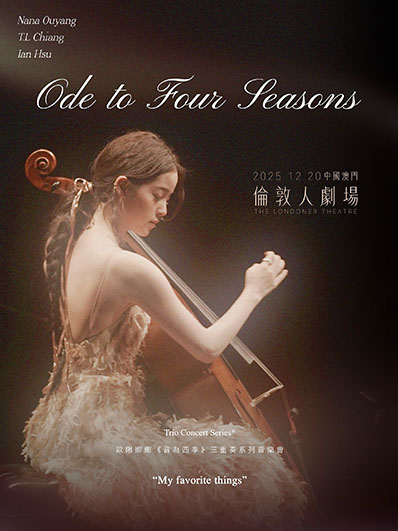【歐陽娜娜《音為四季》三重奏系列音樂會】演出日期:2025年12月20日(星期六),演出時間:晚上7時30分,地點:倫敦人劇場,主辦單位:歐陽娜娜工作室HARMONIE MUSIC HK,合作夥伴:澳門倫敦人。