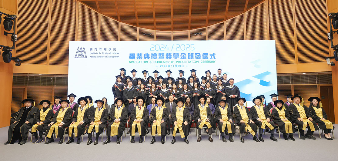 【特訊】澳門管理學院2024/2025學年畢業典禮暨獎學金頒發儀式於日前假澳門科學館會議中心舉行,邀請到中央人民政府駐澳門特別行政區聯絡辦公室教育與青年工作部副部長李勇先、教育及青年發展局高等教育廳廳長許嘉路、澳門管理專業協會會長崔世昌、理事長劉永誠、監事長徐偉坤、以及管院校董會主席莫志偉和副主席何偉業等出席。17間贊助機構代表出席並頒發獎學金。